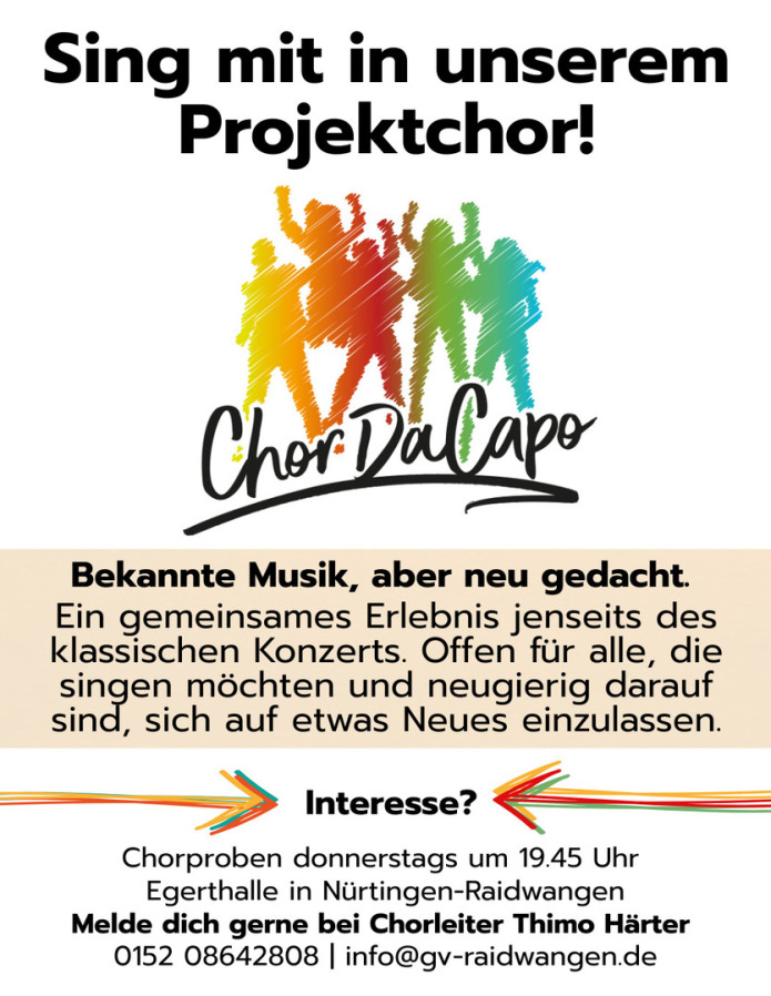 >>> Das Projekt endet mit dem Konzert am 21. November 2026 in der Egerthalle Raidwangen <<<