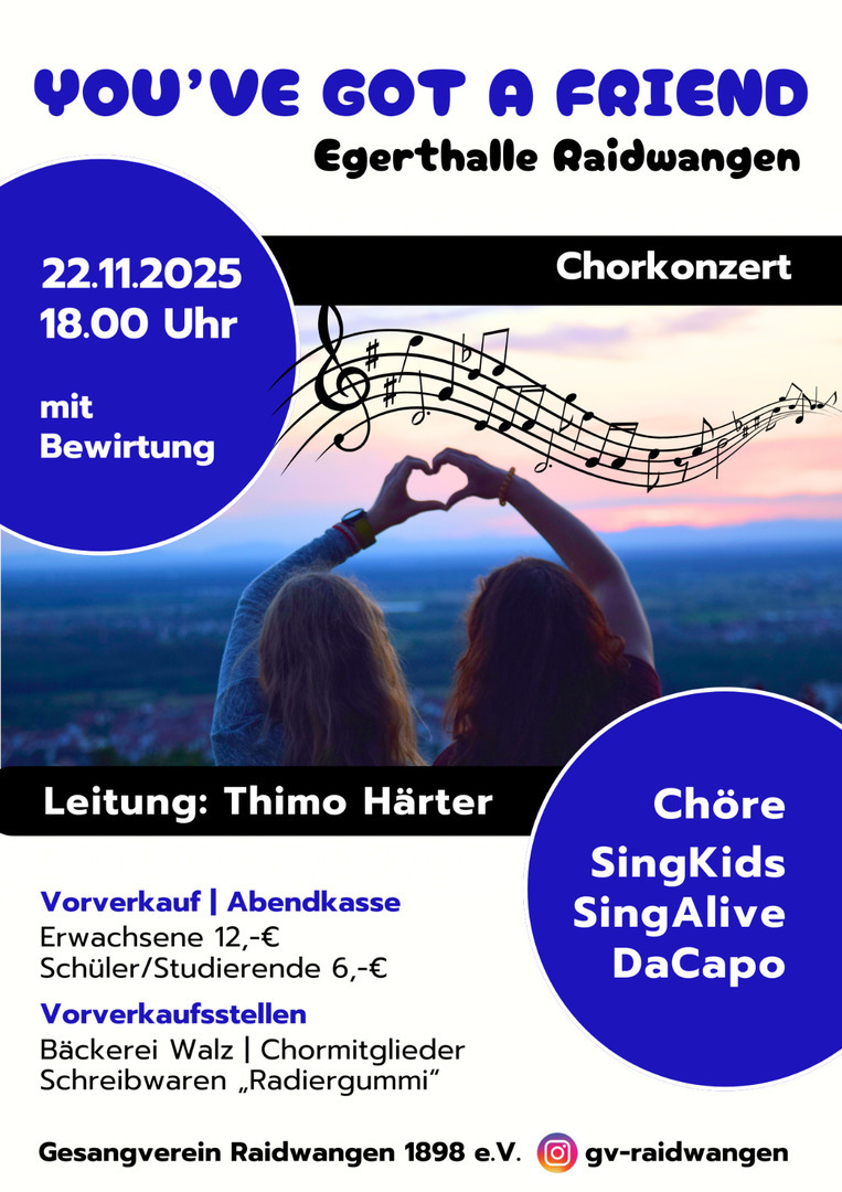 Was sich nach einem modernen, romantischen Gedicht anhört, war der Auftakt zum diesjährigen Konzert „Pure Voices“ des Gesangverein Raidwangen 1898 e.V., das am vergangenen Samstag, 23.11., in der Egerthalle in Raidwangen stattfand.